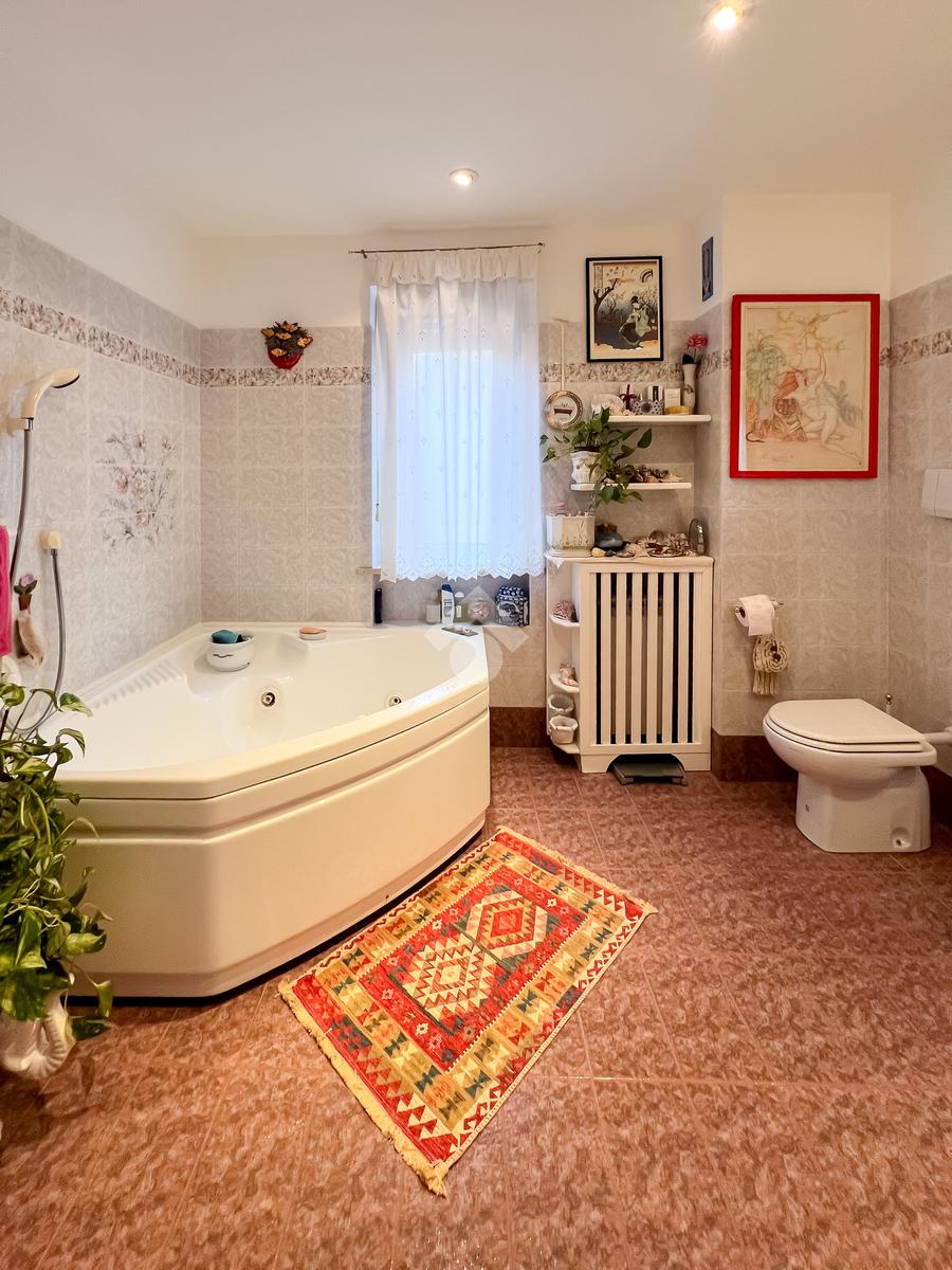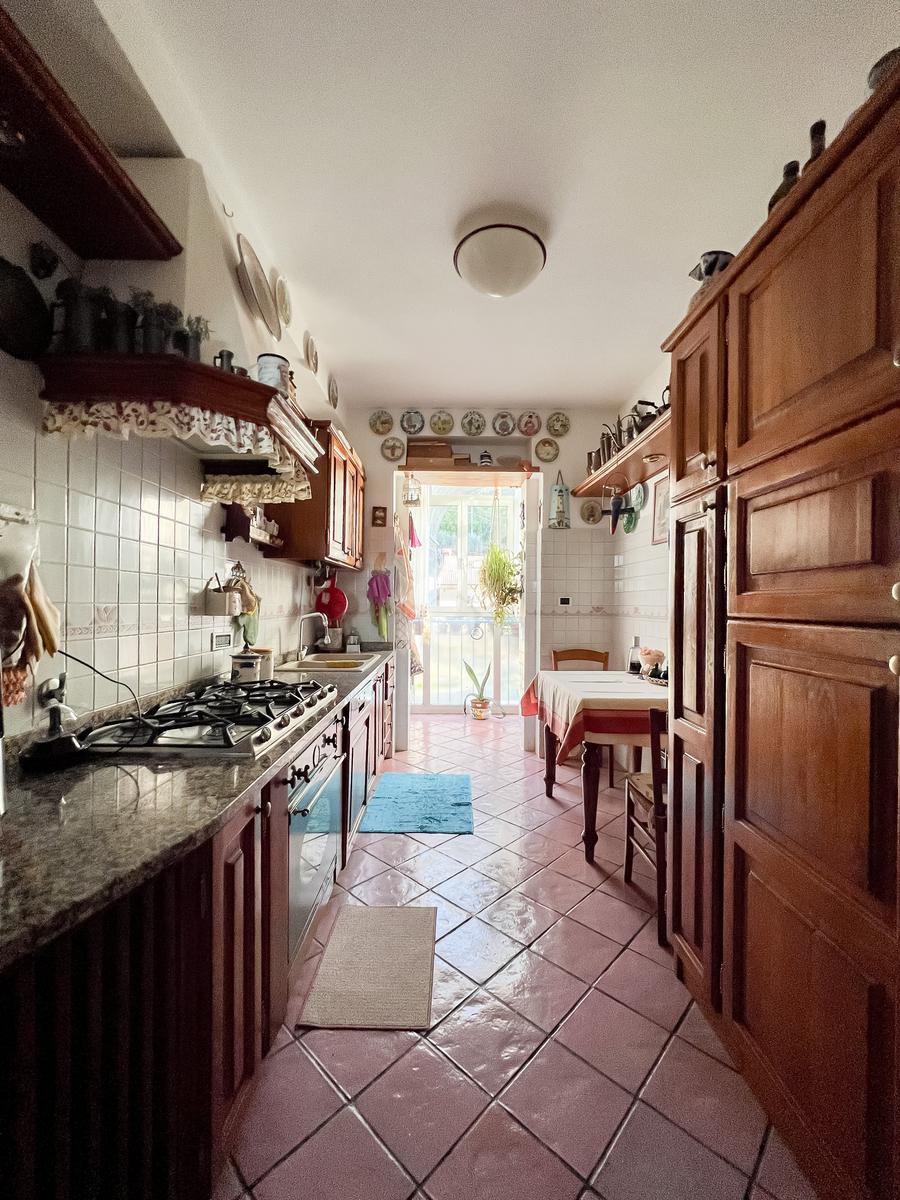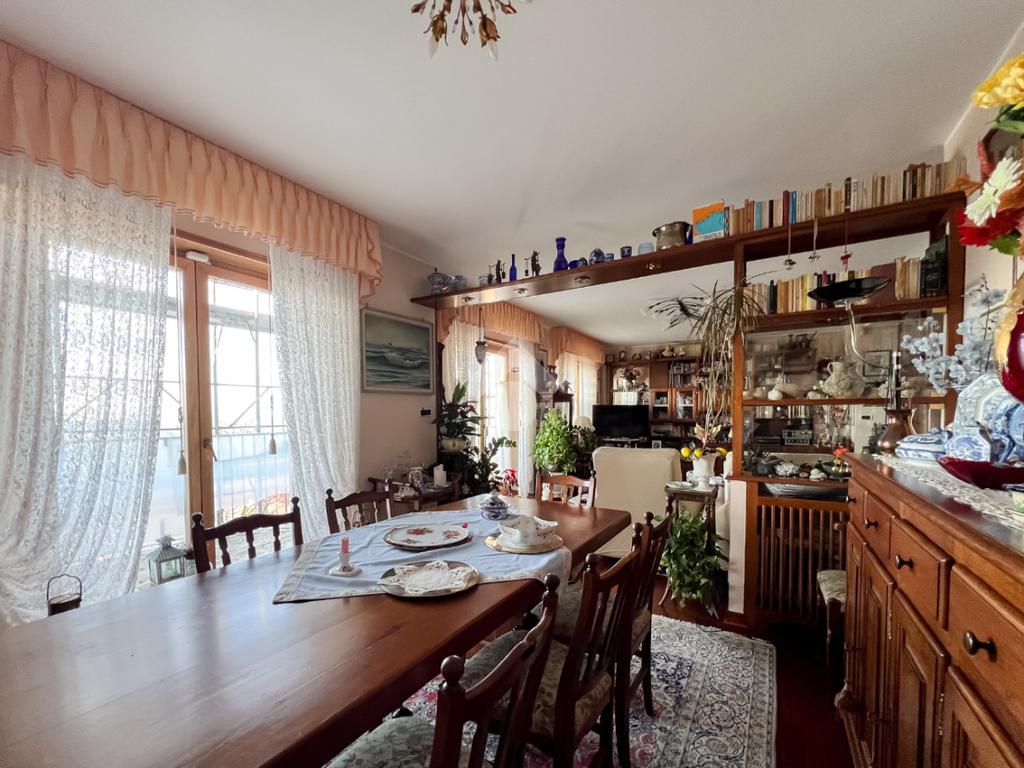 Varcata la porta blindata ci troviamo di fronte a un ampio atrio d'ingresso che si apre sul luminoso salone doppio di circa 40 mq che rappresenta il cuore della casa; questo ambiente è caratterizzato da due portefinestre che conducono al terrazzo abitabile, lo spazio ideale per apprezzare la vista mare. Lungo il disimpegno troviamo una stanza singola, la cucina abitabile dotata di veranda e proseguendo giungiamo alla camera matrimoniale ed infine al bagno completo finestrato corredato di vasca idromassaggio.